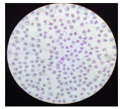 Figure 1 Peripheral blood film of the case showing normocytic normochromic RBCs with reduced platelet count 50,000/µL. Wright-Giemsa stain, magnification ×100
